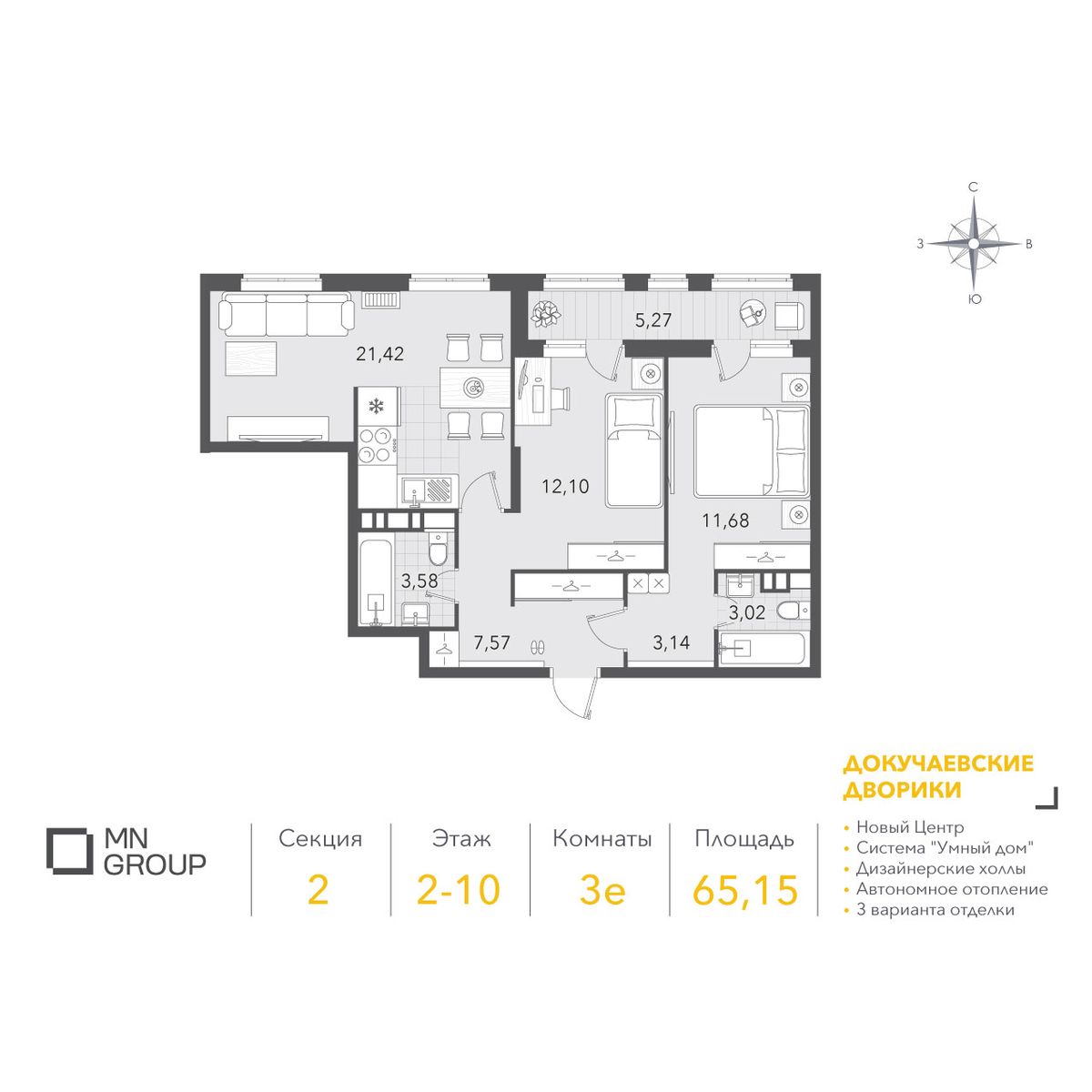3-комнатная69.9 м²
