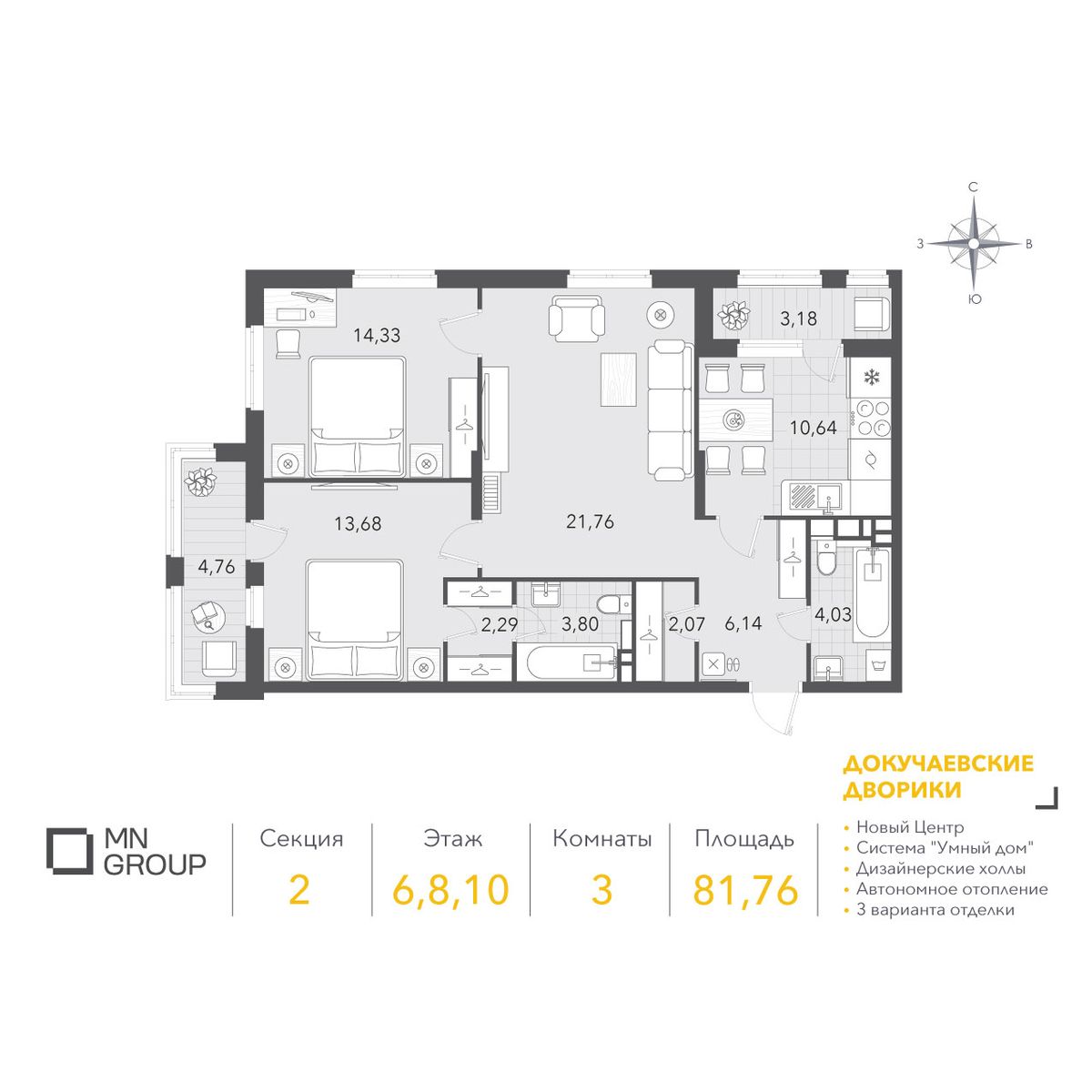 В квартале представлены как популярные евро-форматы планировок, так и редкие лоты: квартиры с индивидуальными террасами, угловым панорамными лоджиями и мастер-спальнями