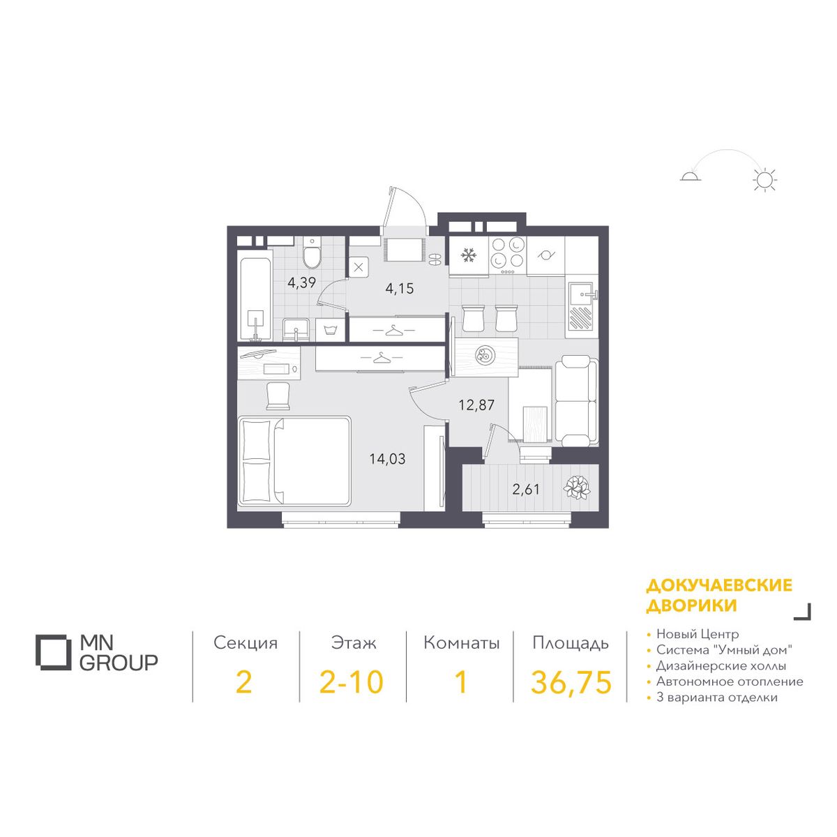 1-комнатная36.75 м²