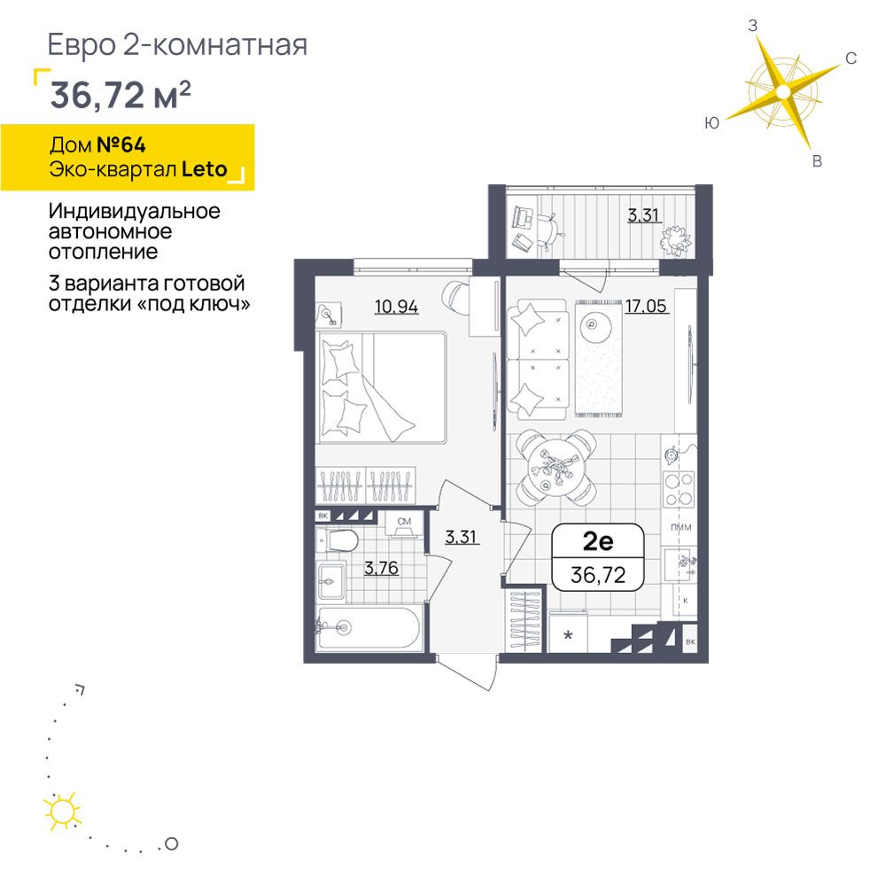 1-комнатная36.72 м²