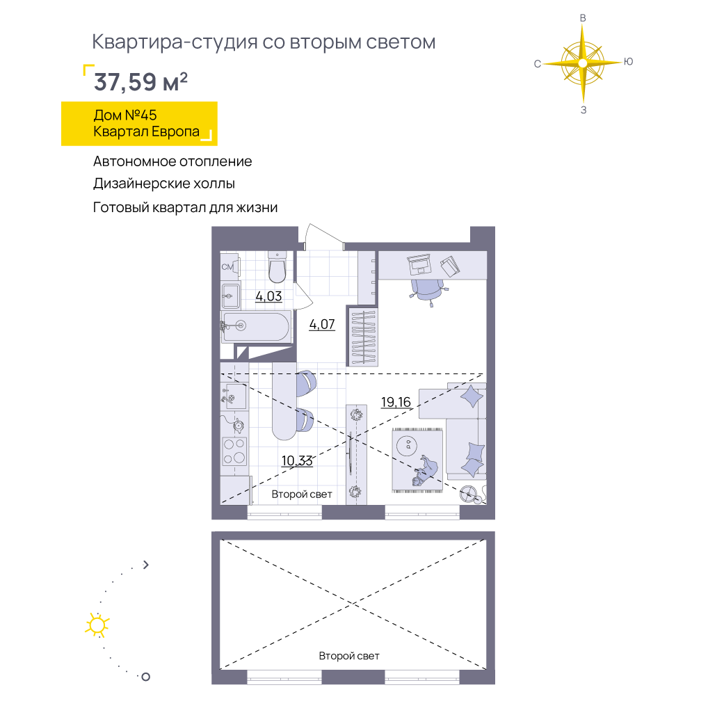 Уникальный формат квартир. Освещения — больше, пространство — шире, а настроение — лучше.