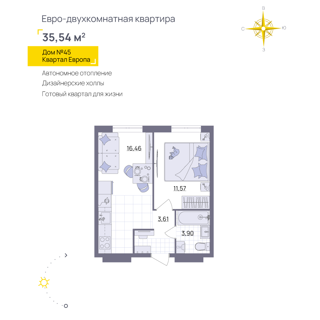 Уникальный формат квартир. Освещения — больше, пространство — шире, а настроение — лучше.