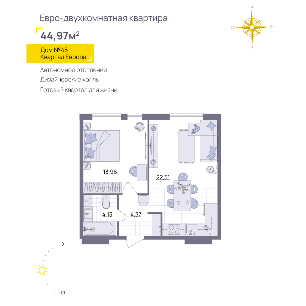 Уникальный формат квартир. Освещения — больше, пространство — шире, а настроение — лучше.