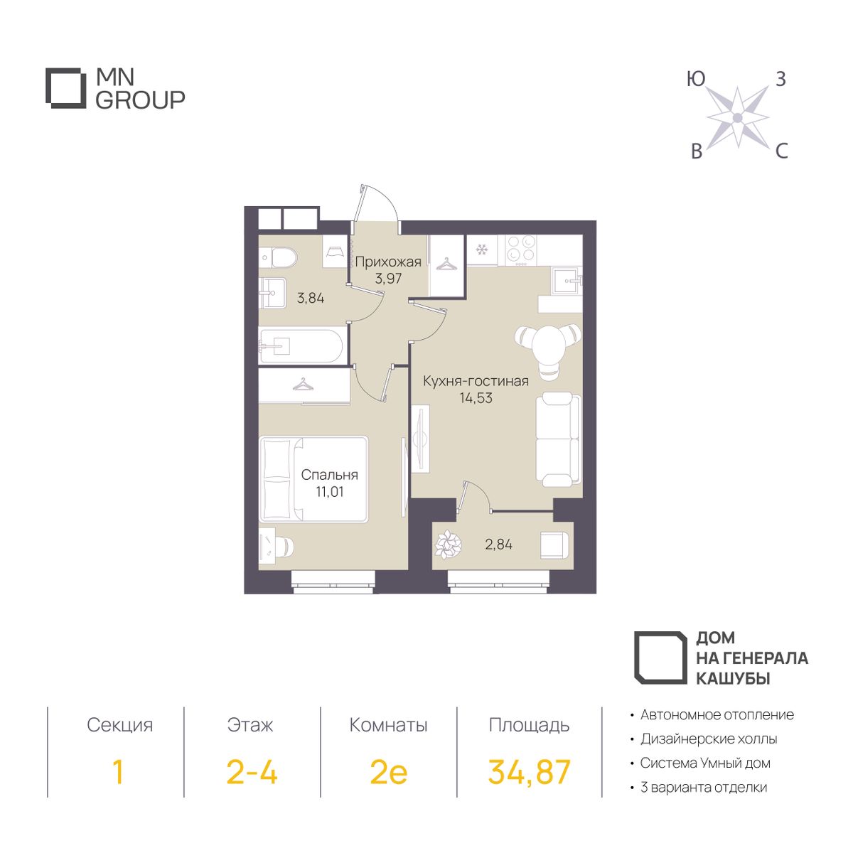2-комнатная34.87 м²