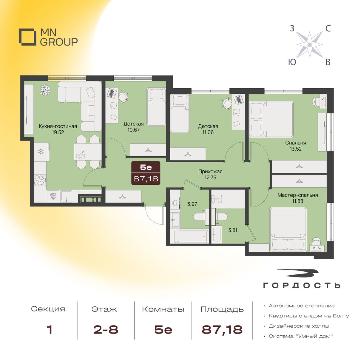 5-комнатная87.18 м²
