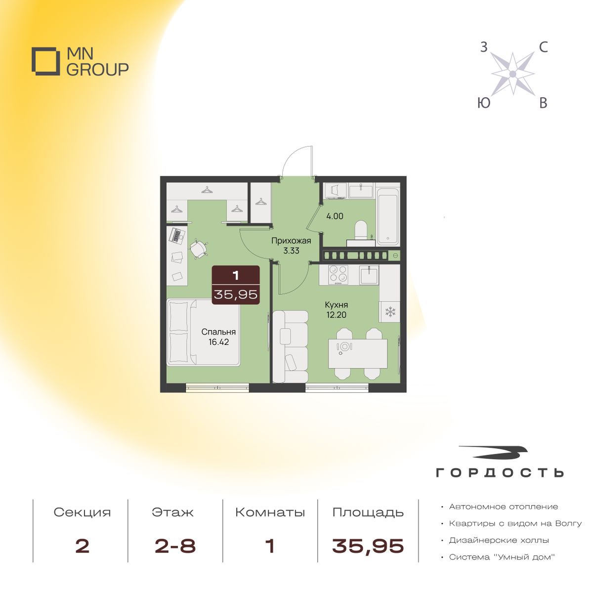 1-комнатная35.95 м²
