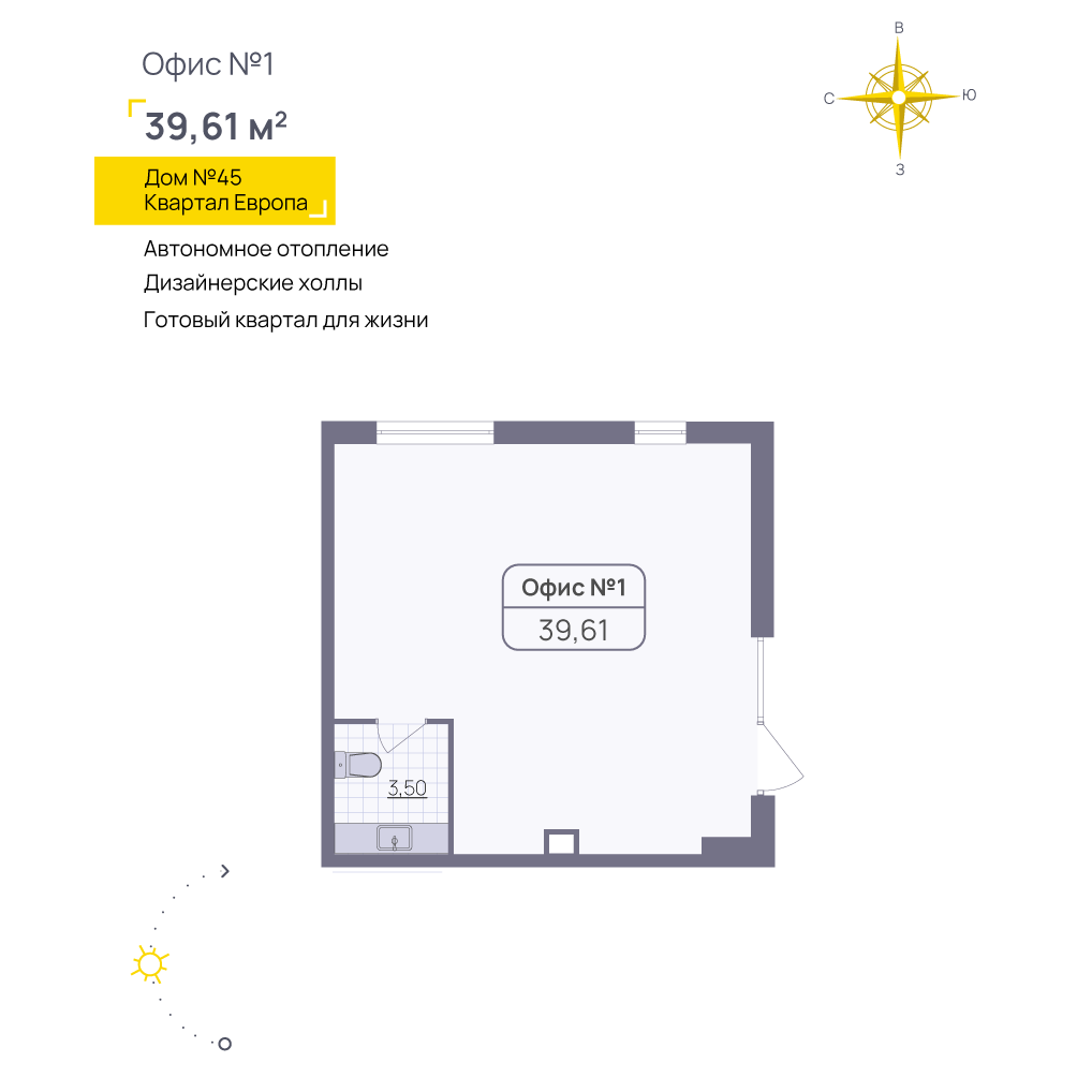null-комнатная39.61 м²